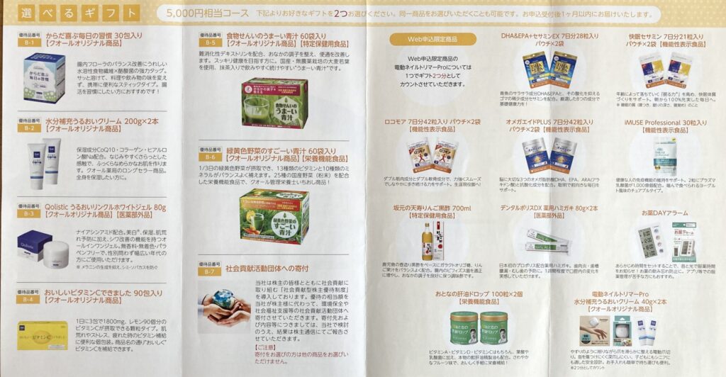 クオールホールディングス 2025年株主優待カタログ(5000円相当コース)